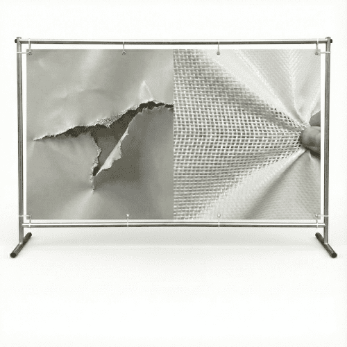 Strong, tear-resistant scrim texture designed for long-term indoor and outdoor use while maintaining a professional appearance.