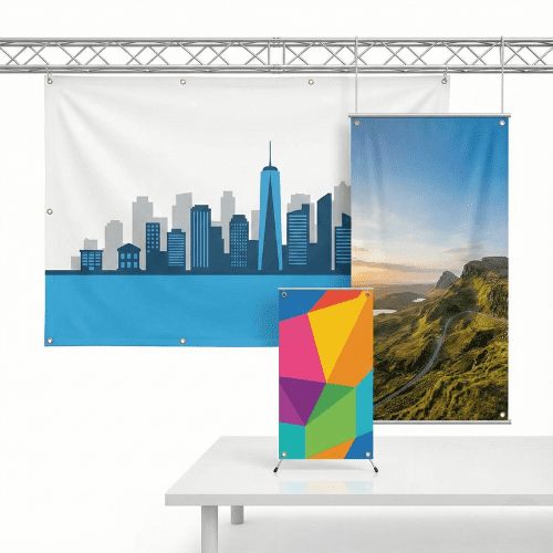 Choose rust-resistant grommets for easy hanging or clean edges for a sleek, frameless display.
